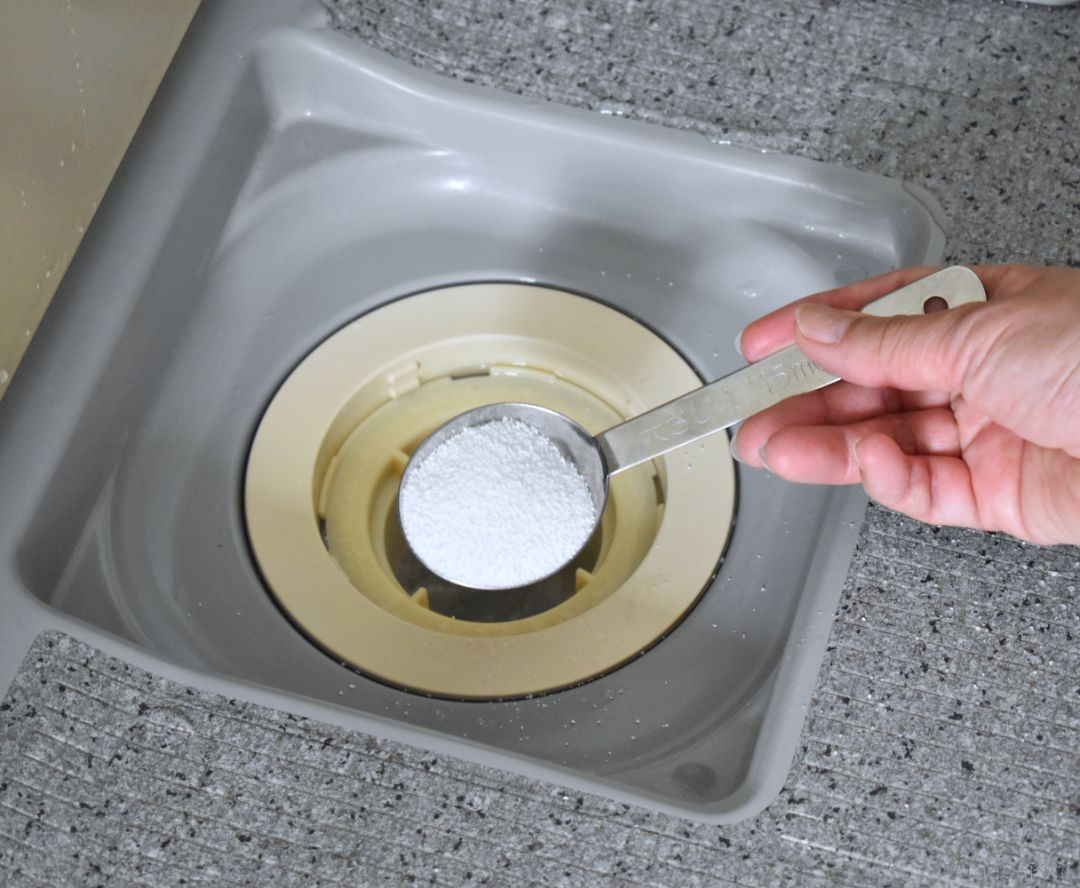 배수구에 과탄산소다를 뿌린 후 뜨거운 물을 부으면 거품 반응과 함께 악취와 이물질이 제거됩니다.