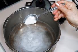 - 냄비 바닥에 물을 넣고 베이킹소다를 2~3큰술 뿌린 뒤 약한 불로 끓입니다.