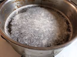 - 식초와 물 1:3 비율로 끓이기: 물을 냄비에 채운 후 식초를 넣고 약한 불로 10~15분간 끓입니다. 이후 수세미로 닦아줍니다.