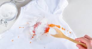 구연산이나 식초를 얼룩 부위에 바르고 문지른 뒤 세탁합니다.