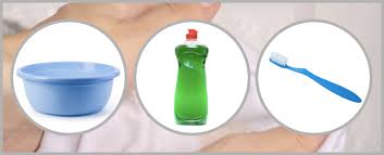 ① 베이킹소다 2큰술과 식초 100ml를 섞어 얼룩 부위에 도포한 후 30분간 두었다가 비벼 빨거나 세탁기에 넣습니다.