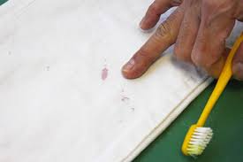 찬물에 담갔다가 중성세제를 이용해 비벼빨며, 오래된 경우 과산화수소(3%)를 소량 떨어뜨려 반응시킨 뒤 헹굽니다.